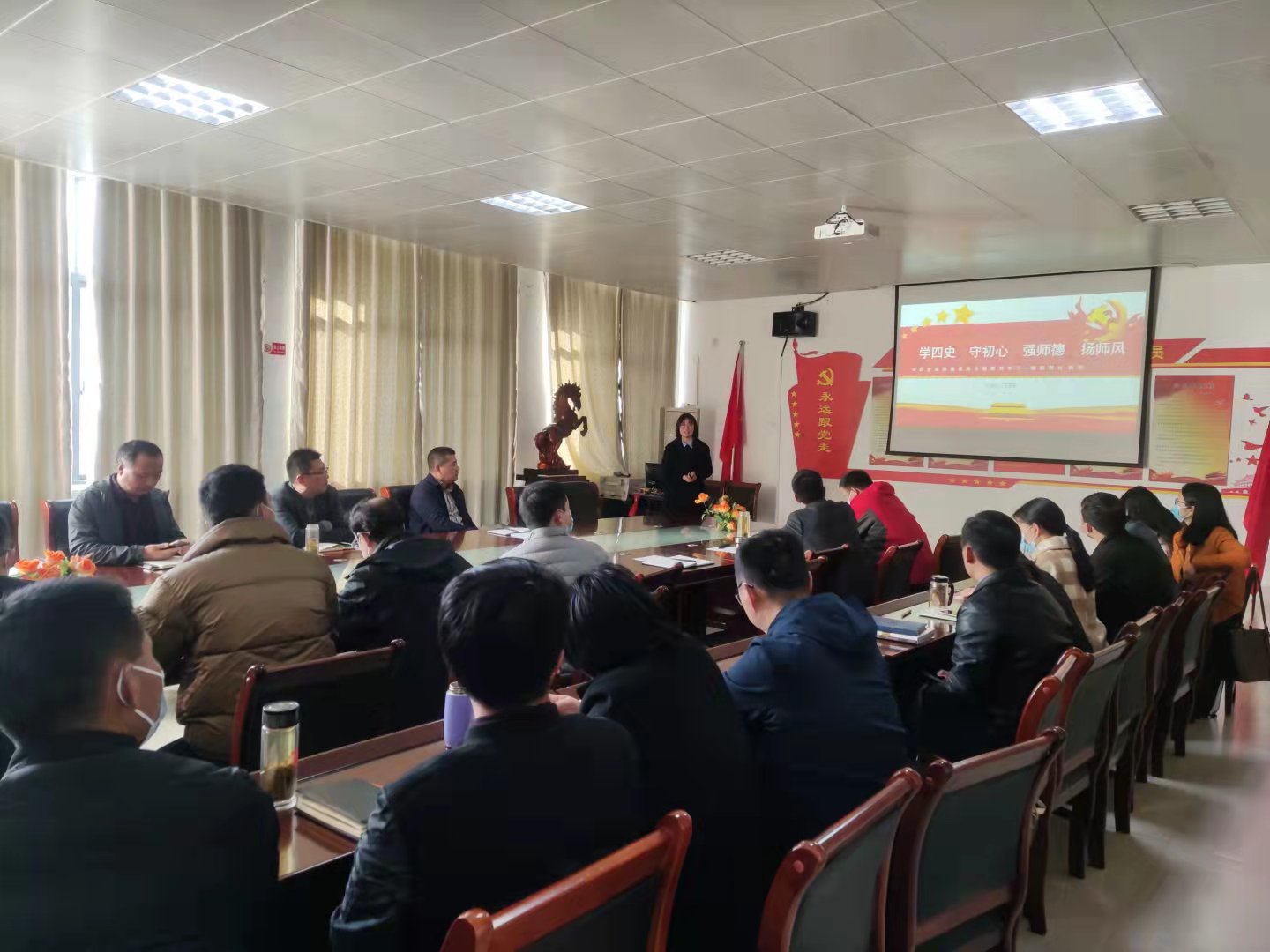 11月9日下午,江南jn体育登录入口举办“学四史 守初心 强师德 扬师风”主题教育党课,全体教职工党员参加。教工支部书记王平俊为党员们上了一堂题为《学四史强师德师风》的党课。