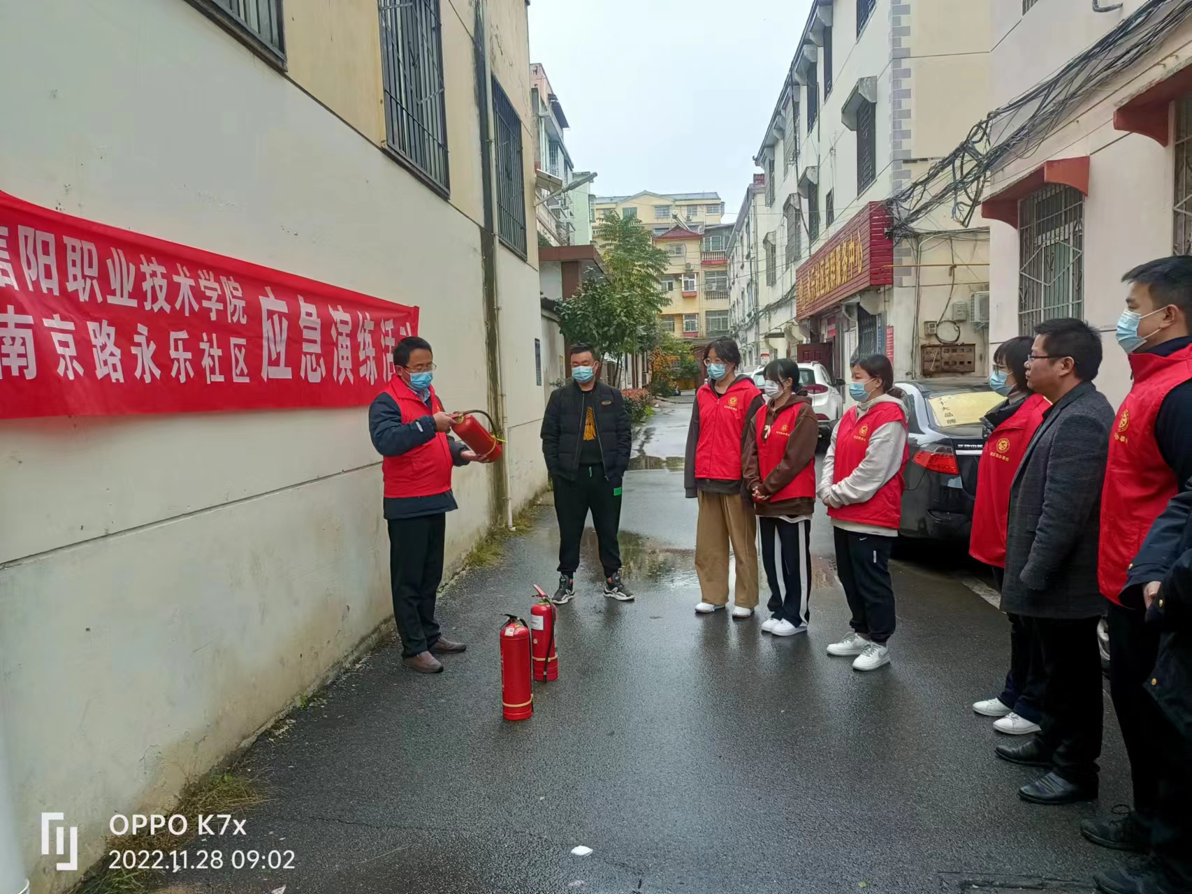 演练中,随着警报声响起,参与群众在楼层指引员的指引下,进行着有序的撤离。“掩住口鼻、弯腰前行、有序小跑……”楼层和过道值班人员对群众提醒,指引他们迅速到达指定位置。到达指定位置后,立即清点人数并向社区领导汇报情况,整个疏散演练过程组织严密、迅速有序,用时4分50秒。应急疏散演练结束后,我校保卫处消防科长吴长城重点讲解了预防火灾的基本常识、灭火器的正确使用和操作、逃生注意事项等内容。同时,向群众演示了规范使用灭火器的方法步骤,并邀请部分人员参与了使用灭火器操作体验。
