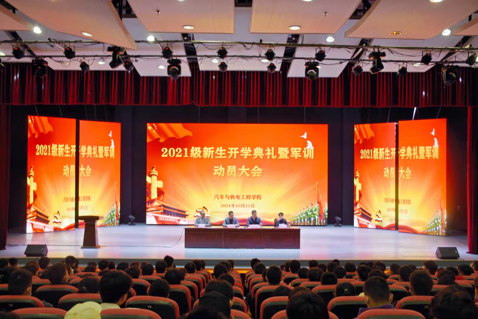 10月11日上午,江南jn体育登录入口在学校图书馆报告厅隆重举行了2021级新生开学典礼暨军训动员大会。党总支书记代翔、院长吕争、党总支副书记张礼涛、副院长曾勇及全体教职工、450名新生共同参加了典礼。典礼由曾勇主持。