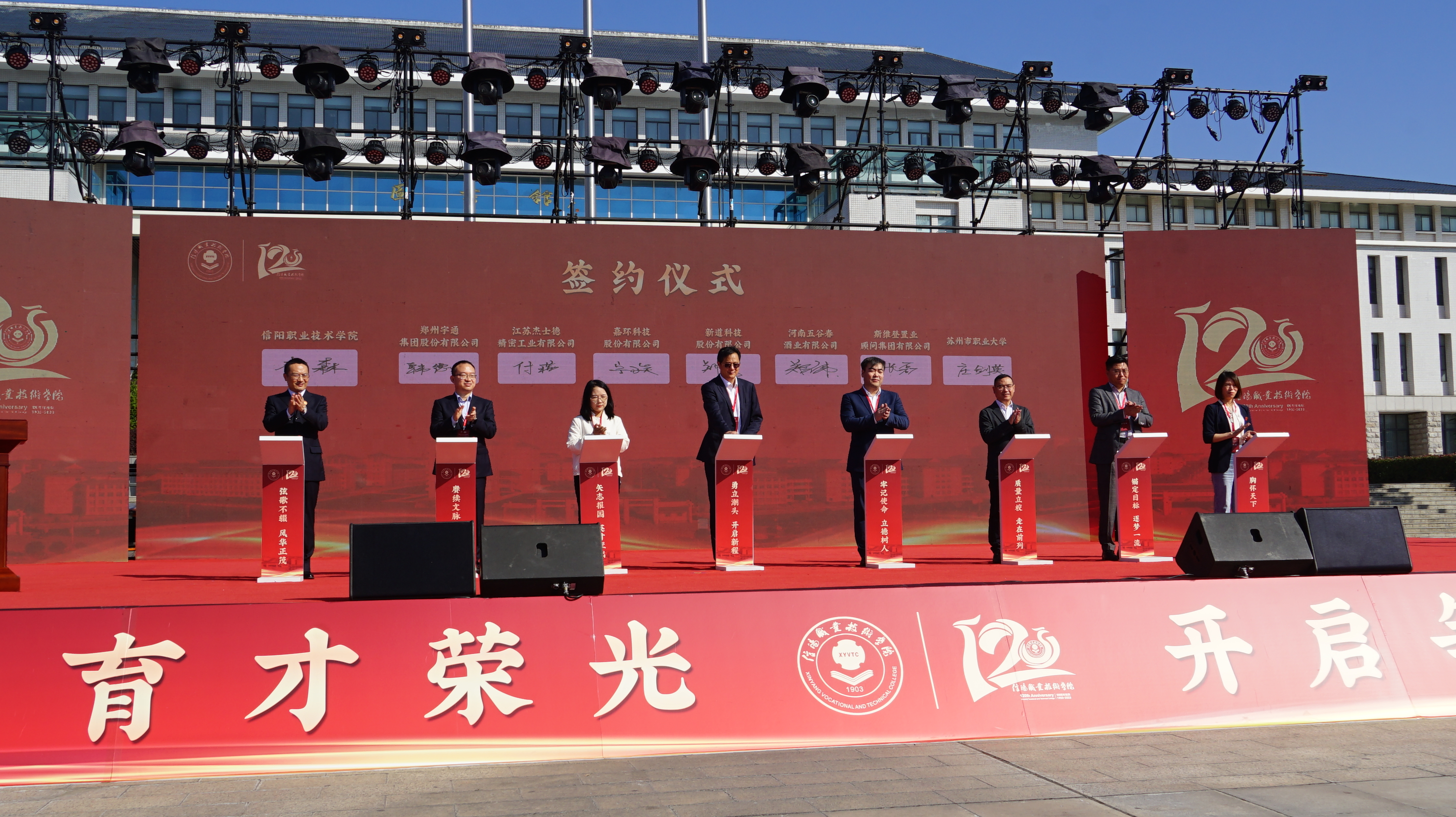 校企共融推进专业建设,产教融合助力协同育人。10月15日上午,在庆祝学校办学120周年高质量发展大会上,校长李森代表学校与郑州宇通集团有限公司、江苏杰士德精密工业有限公司签订校企合作协议。