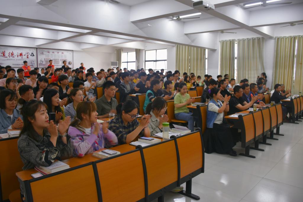 5月11日下午,江南jn体育登录入口在道德讲堂举办了党史学习教育专题讲座。学校马克思主义学院青年教师陈思为师生代表作了一场题为《习近平总书记关于坚持“一国两制”和推进祖国统一重要论述》的报告。党总支书记代翔、副院长岳杰、冷靖、郑荻、学管秘书李竹婷、全体教职工党员及二百余名学生代表聆听了报告,讲座由办公室主任张礼涛主持。