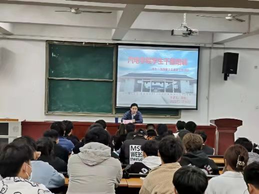 为进一步加强学生干部队伍建设,提升其综合素质、服务意识和服务能力,培养一批“有理想,有学识,有作为,有担当”的优秀学生干部,2021年11月16日晚,学院团总支书记李明老师为汽电学院学生干部代表进行了一次题为“学生干部的能力素质和工作方法”的培训。